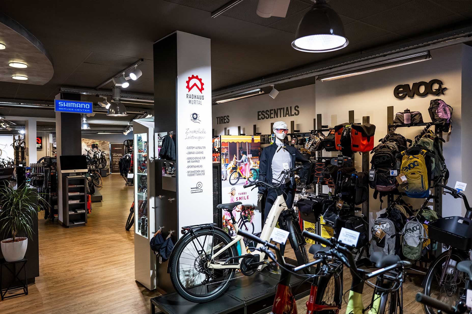 Unser Shop verfügt über eine bestens ausgestattene Werkstatt und top-geschultes Werkstattpersonal. Die neueste Software für E-Bikes ist ebenso verfügbar wie Ersatzteile für Ihr Fahrrad. In unserem großzügigen Schauraum finden Sie - in entspannter Atmosphäre - bestimmt das Passende für sich.
